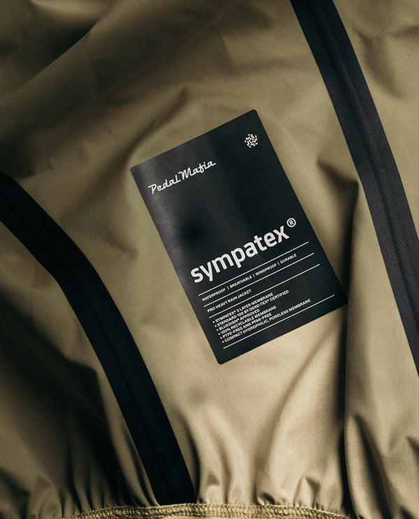 一件由Sympatex膜織物製成的堅固的雨衣,旨在吸收運動過程中產生的水蒸氣,並將其排出到外面,同時保持100%防水。
