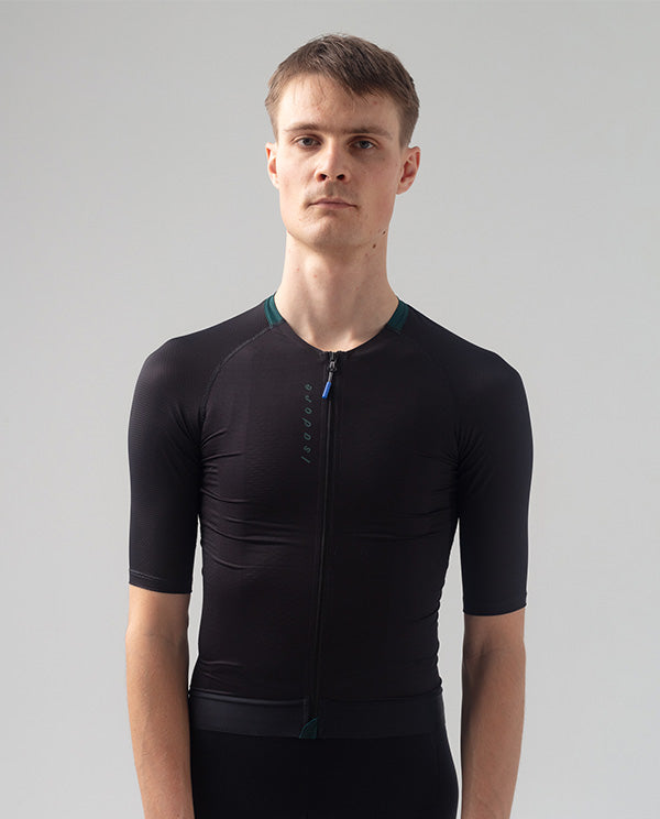 一件專為盛夏高溫設計的輕量競速車衣,結合三種高機能網眼面料,帶來極致透氣、迅速排汗與親膚包覆感,讓你在每一次加速時都能保持乾爽與專注。
